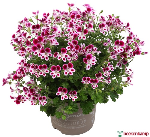 Pelargonium x grandiflorum ´Elegance Imperial´ weiß- purpur 20-30 cm stehend    Status    k.A.