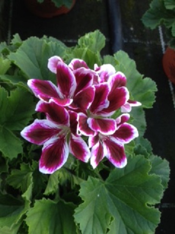 Pelargonium x peltatum ´Royal Candy Choc´ helles pink- lila Rand halbhängend    Status    k.A.