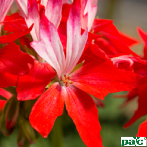 Pelargonium x zonale ´Fireworks Red-White´ rot-weiß 30-50 cm stehend    Status    k.A.