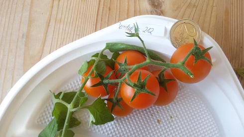 Flaschentomate ´Andenhörnchen´ rotgelb gestreift 180 cm    Status    k.A.