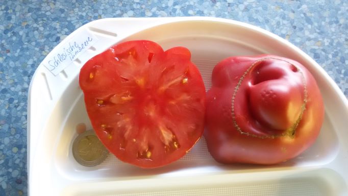Fleischtomate Ochsenherz ´Kas 21´ blaupinkrot geflammt 170 cm    Status    k.A.