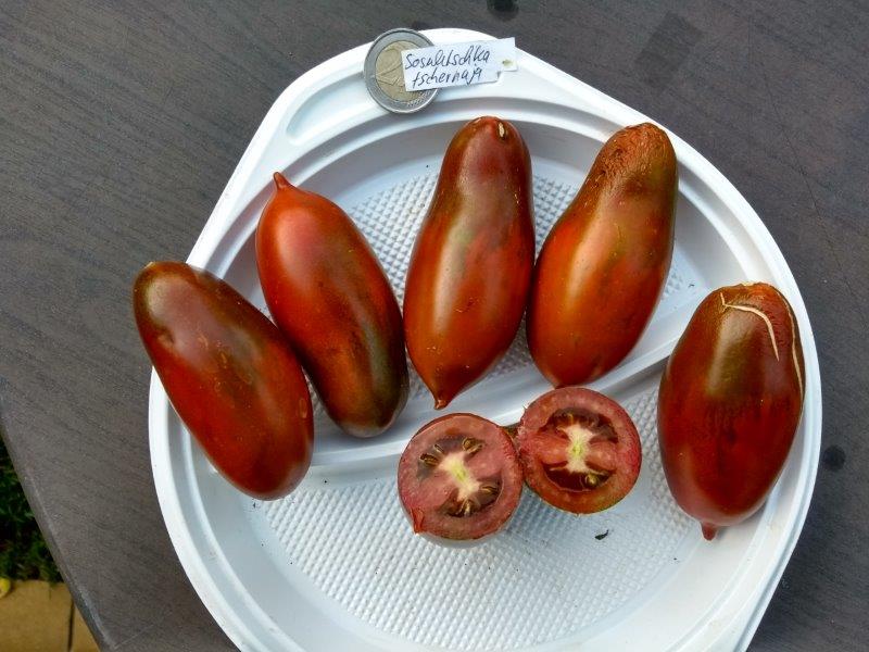 Flaschentomate ´Sosuletschka Tschernaja´ braunrotgrün 160 cm    Status    k.A.