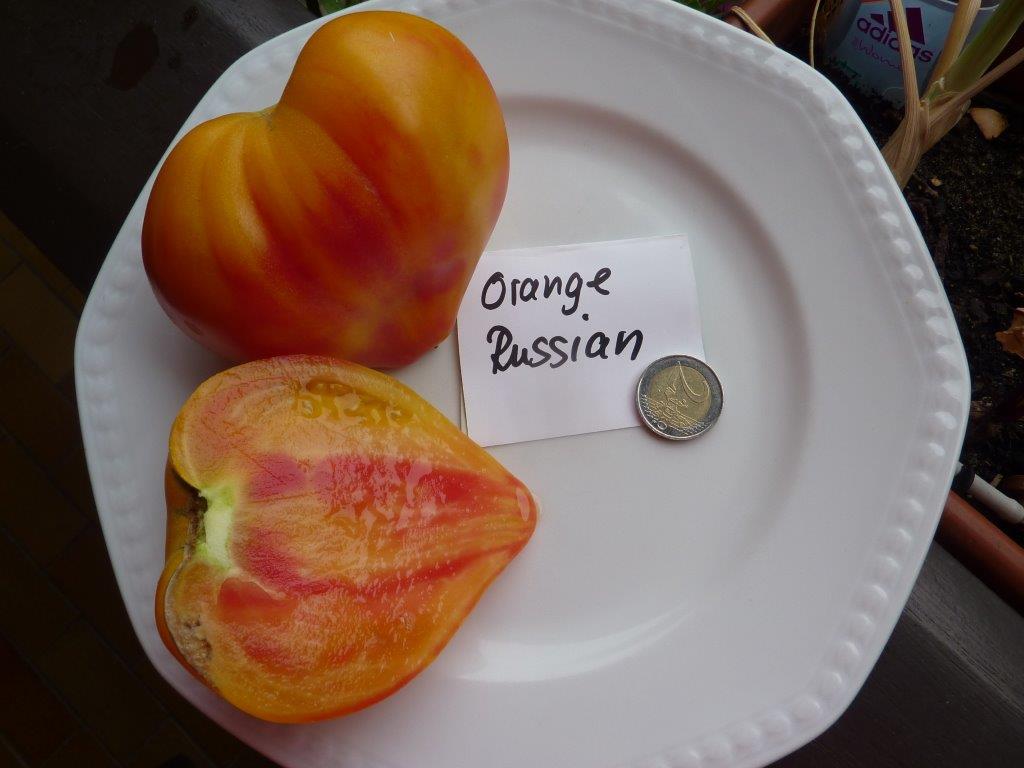 Fleischtomate Ochsenherz ´Orange Russian´ orange, rosa, rot marmoriert 180 cm    Status    k.A.