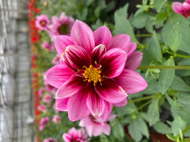 Dahlie ´Dalaya Meena Yogi´ Rosa mit roter Mitte 40-60 cm    Status    k.A.