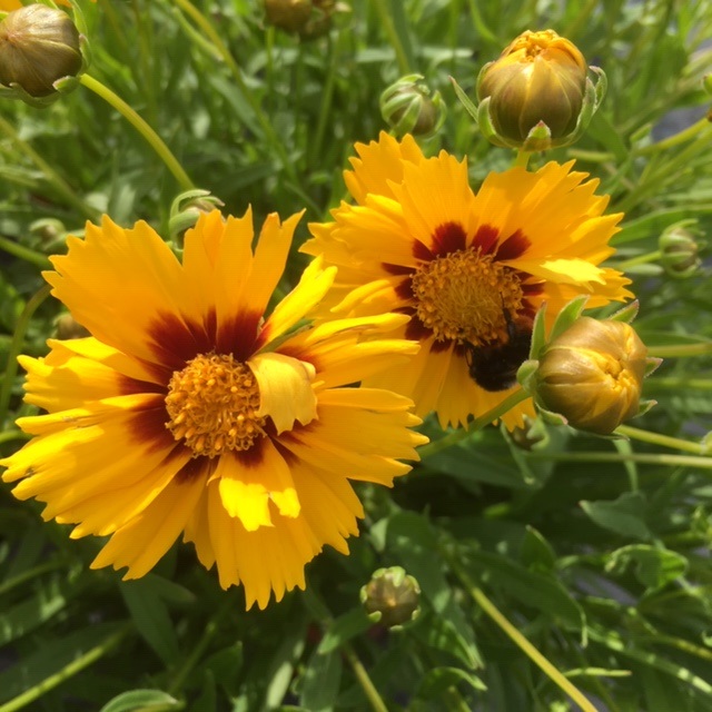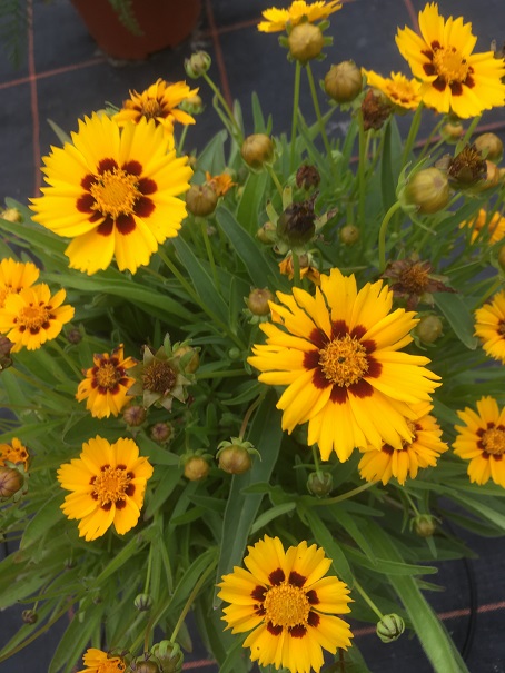 Coreopsis lanceolata ´Sterntaler´ gelb mit rotbrauner Mitte 40 cm    Status    k.A.