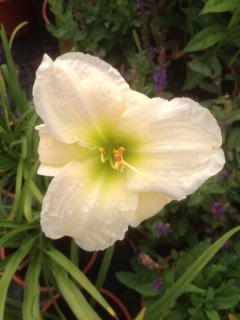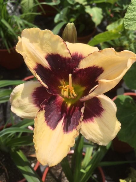 Hemerocallis x cultorum ´Canadian Border Patrol´ cremefarben mit purpurnem Auge 60-70 cm    Status    k.A.