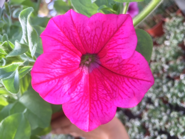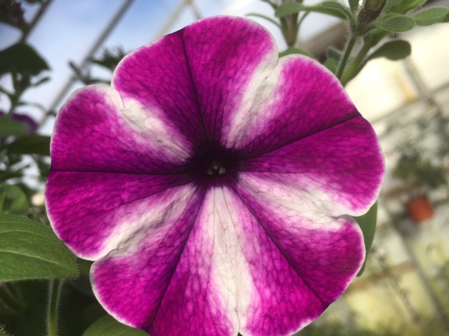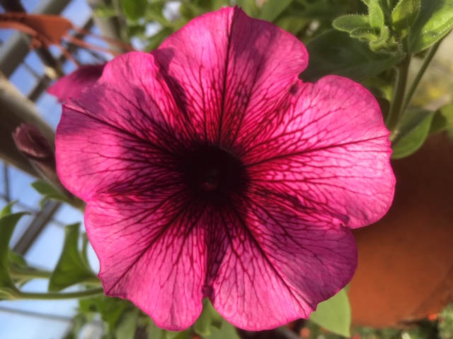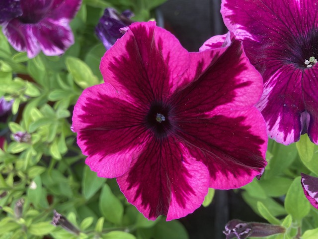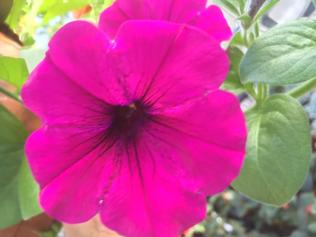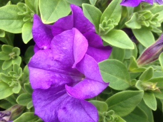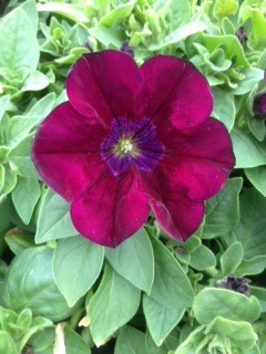 Petunia hybrida ´Tea Indigo Vein´ dunkelblau geaderte Blüte hängend    Status    k.A.