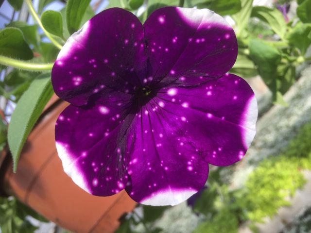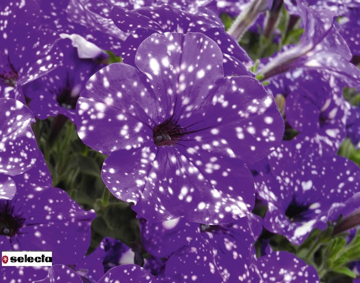 Petunia cultivars ´Night Sky´ violett mit weißen Punkten hängend    Status    k.A.