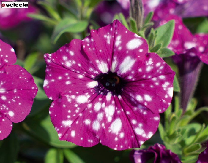 Petunia cultivars ´Electric Purple Sky´ magenta mit weißen Punkten halbhängend    Status    k.A.