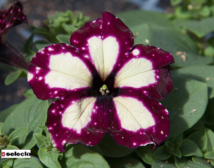 Petunia cultivars ´Amore Purple´ purpur mit weißem Stern halbhängend    Status    k.A.
