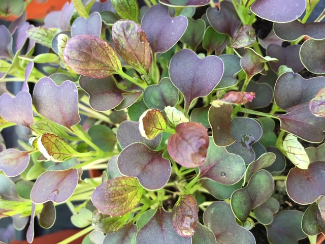 Asia Salat Pflanzen ´Purple Mizuna´ grün mit pinken Stielen 20-30 cm    Status    k.A.