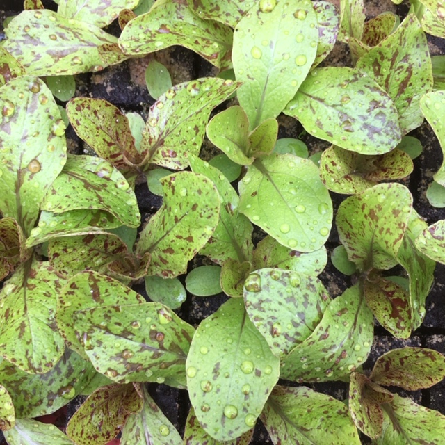 Romanasalat-Pflanzen ´Forellenschluß´ grün mit roten Sprenkeln    Status    k.A.
